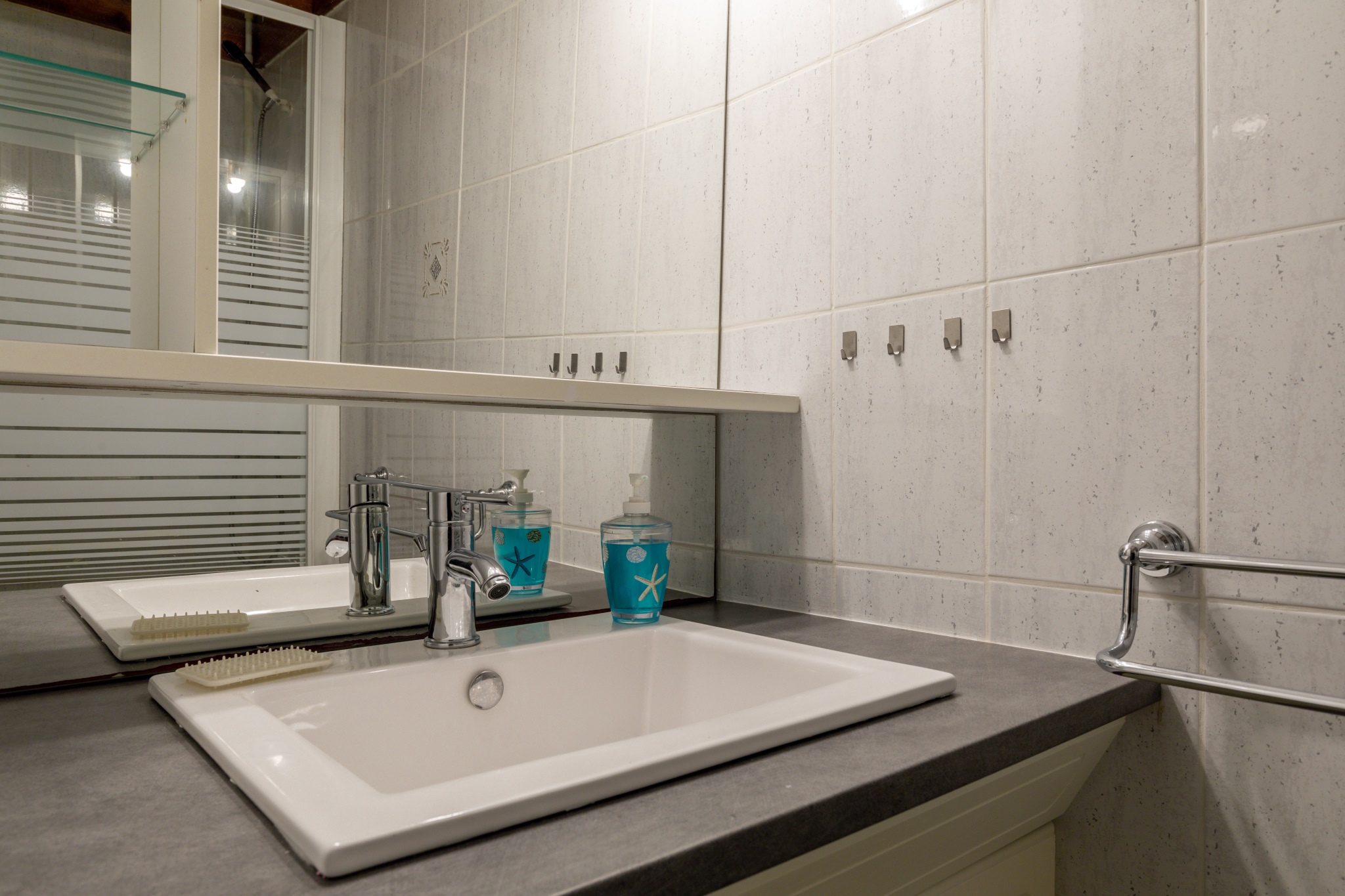 It is composed of a living room with a TV, an open-plan kitchen equipped with a ceramic glass cooktop, a fridge / freezer and an oven.