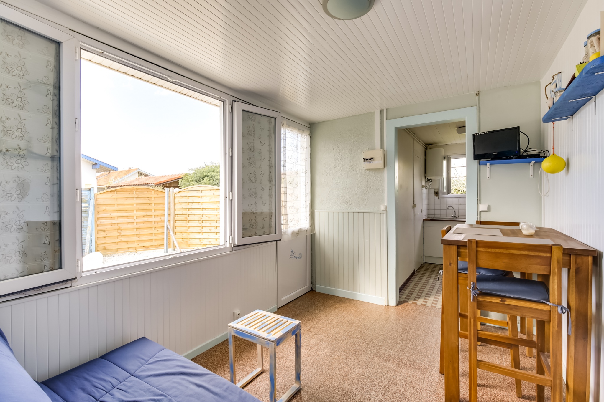 In Biscarrosse Plage, 400m from the Ocean, small fisherman's house composed of a living room with a reclining sofa, a fitted kitchenwith a high bar table, a gas cooktop, a hood, a microwave and an oven, a coffee maker, a toaster and plates.