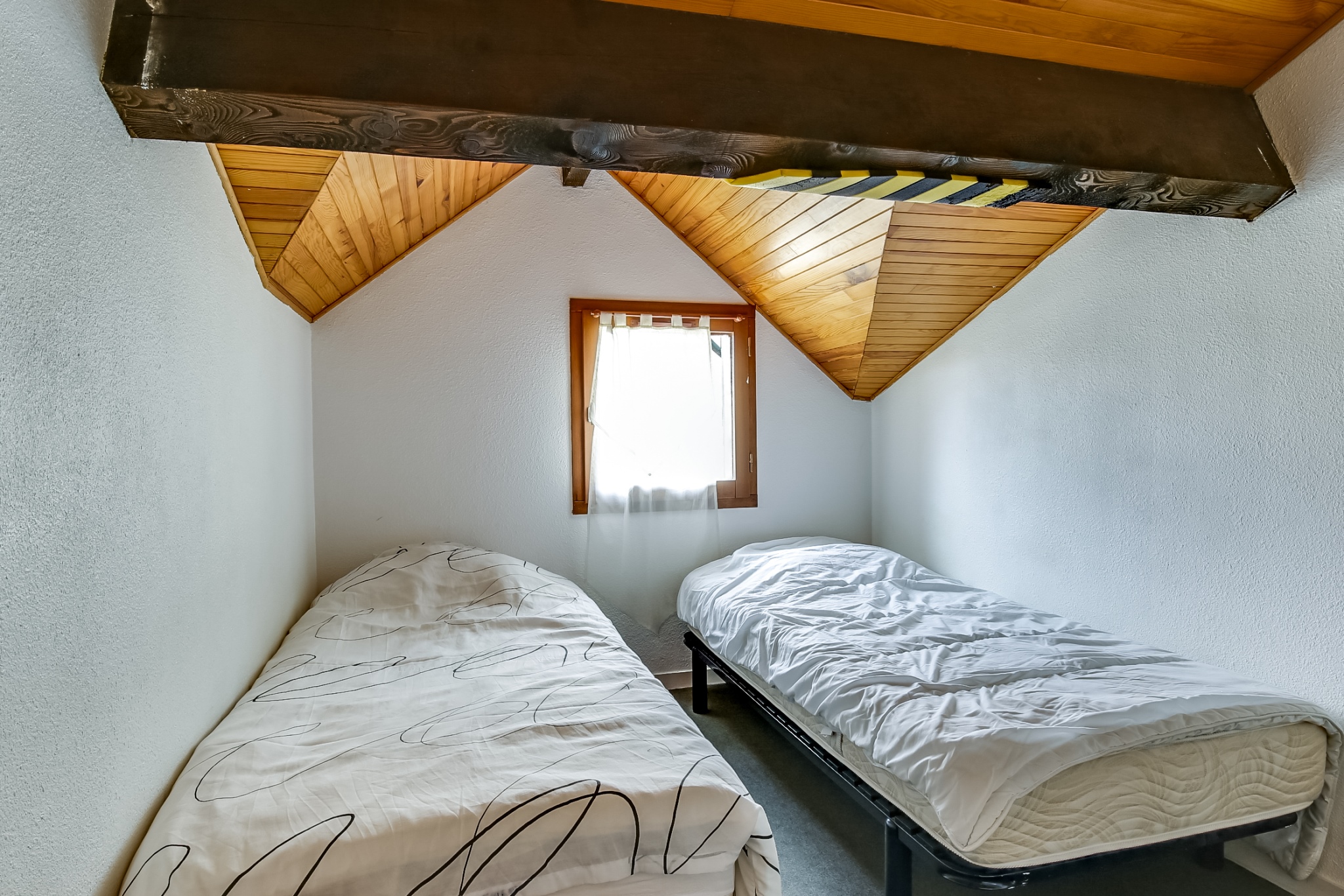 Two bedroom adjoining house with a mezzanine, a small garden / terrace. 40m2 North-East facing house.