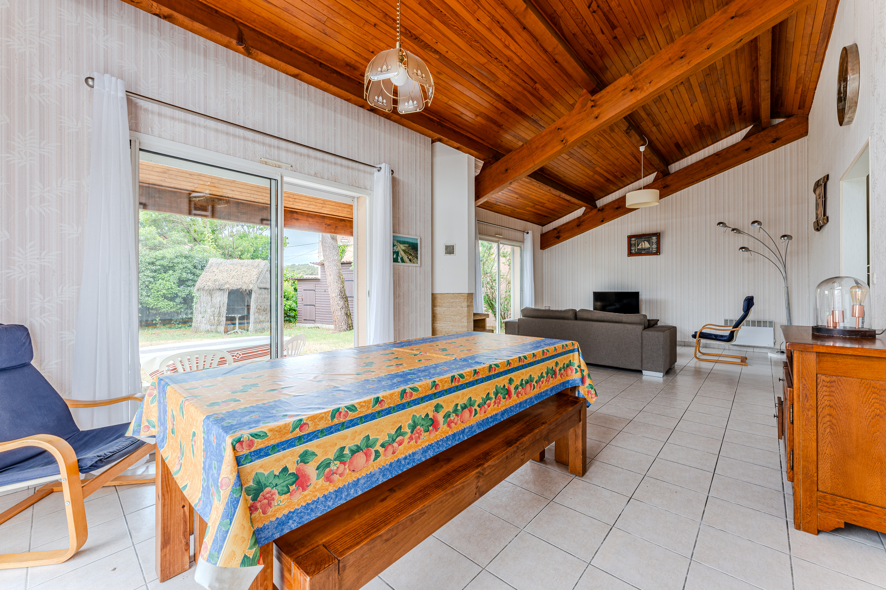 REF 300PIN - Agréable maison individuelle avec grand jardin. Cuisine équipée, d'un réfrigérateur, d'un micro ondes, four, feux gaz. Salon, salle à manger donnant sur une grande terrasse couverte avec barbecue et sur le jardin à l'arrière de la maison. 2 chambres l'une avec un lit en 140 et un lit en 90. L'autre avec un lit en 140.