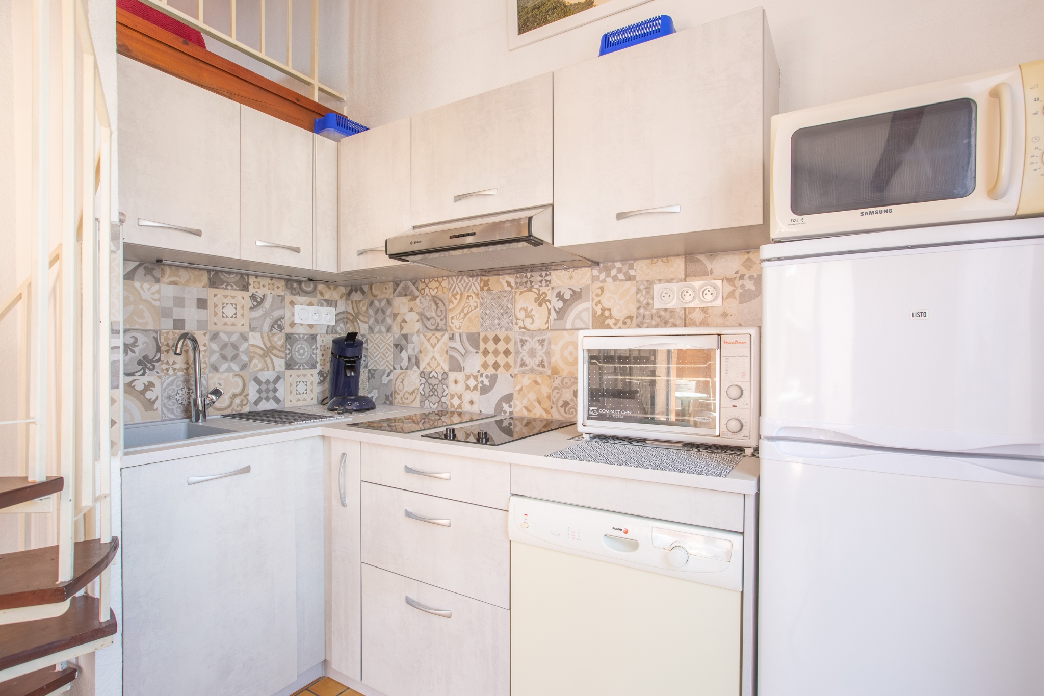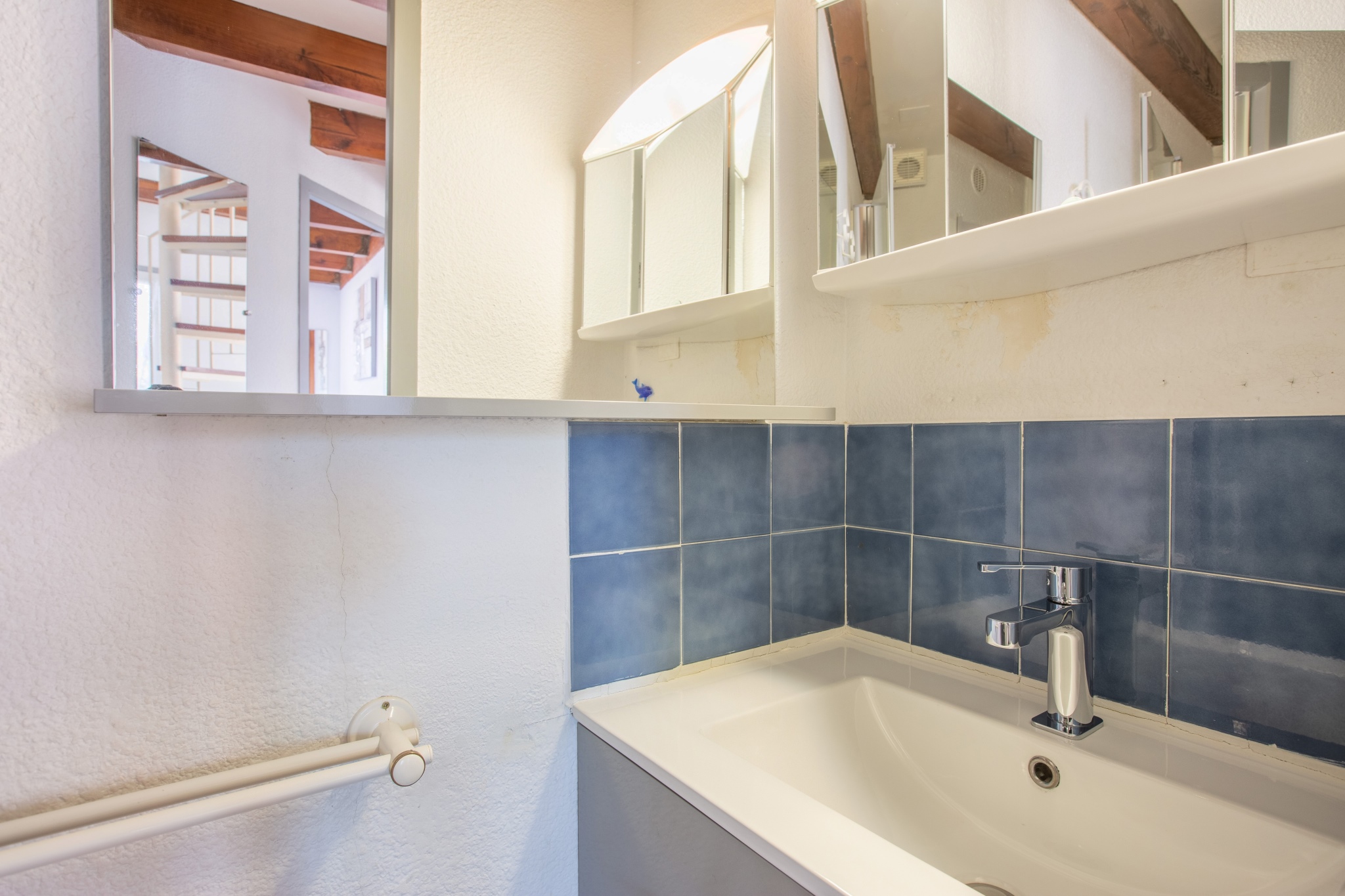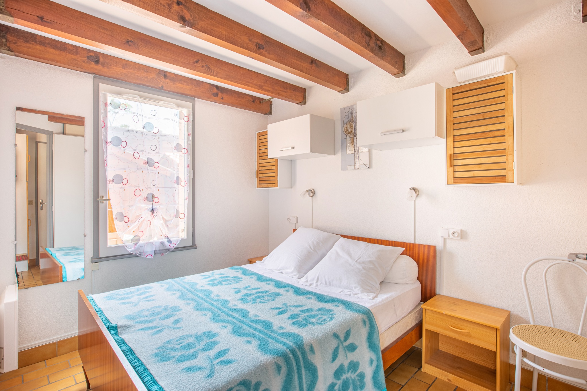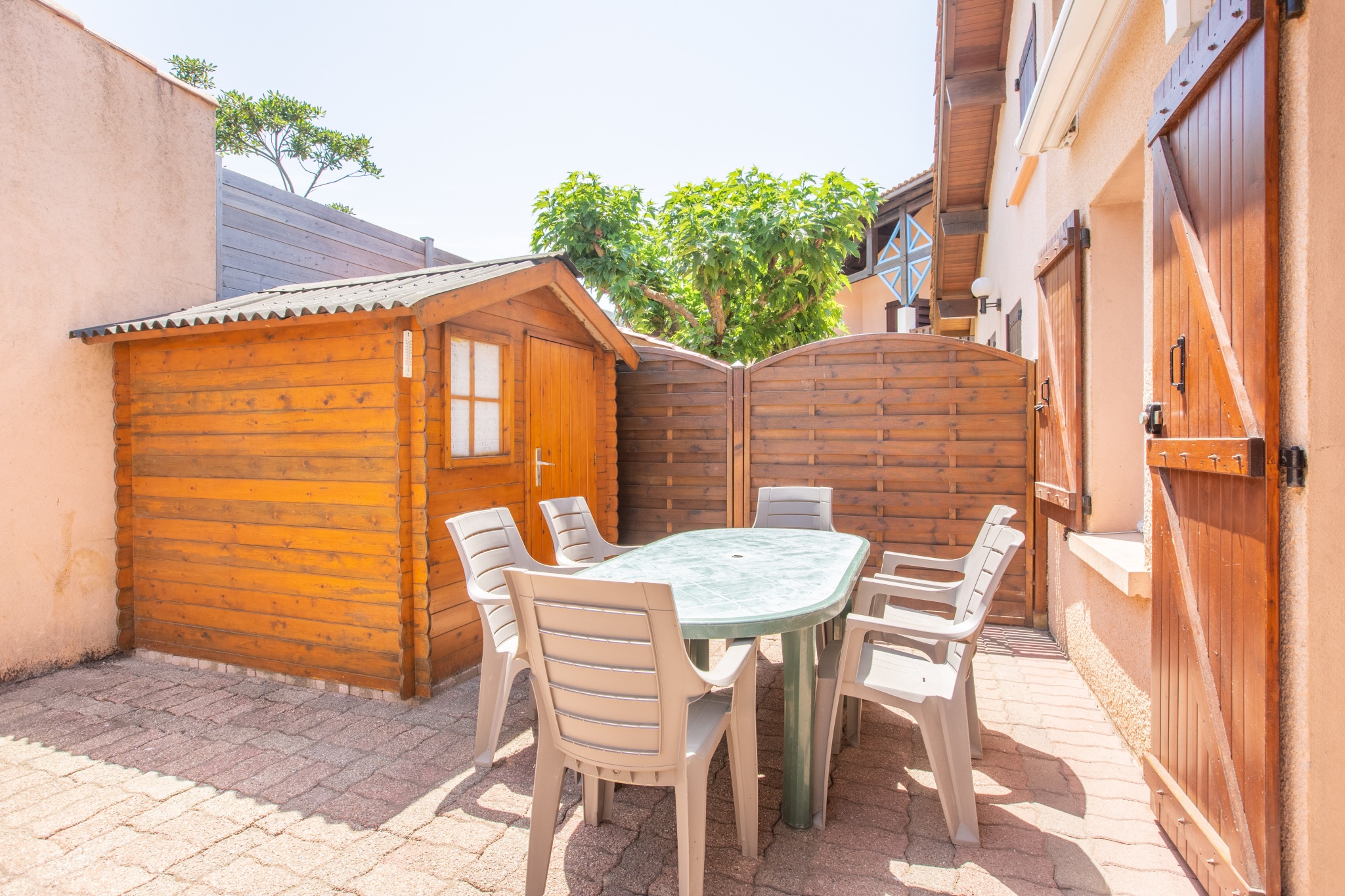 Dans une petite résidence composée d’appartements et de maisons mitoyennes, maison jumelée de type T2 mezzanine composée d’un salon salle à manger avec TV donnant sur une cour exposée SUD-EST. Cuisine ouverte équipée de plaques vitrocéramique, hotte, four, cafetière,cafetière à dosettes, micro-onde, lave-vaisselle, réfrigérateur/congélateur. Une chambre avec un lit double (140) et placard. Salle d’eau. WC indépendant. A l’étage, mezzanine avec deux lits doubles (140) et penderie.