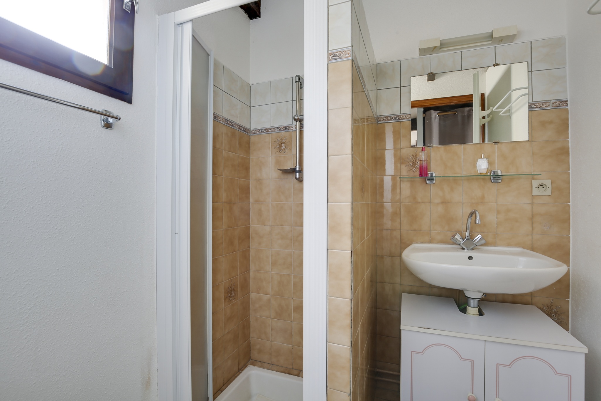 Charmante maison T2 mezzanine de 50m², composée au rez-de-chaussée d'une cuisine avec réfrigérateur, plaque de cuisson au gaz, hotte, four, cafetière, grille-pain, lave-linge et d’un séjour avec un convertible 2 places, TV.