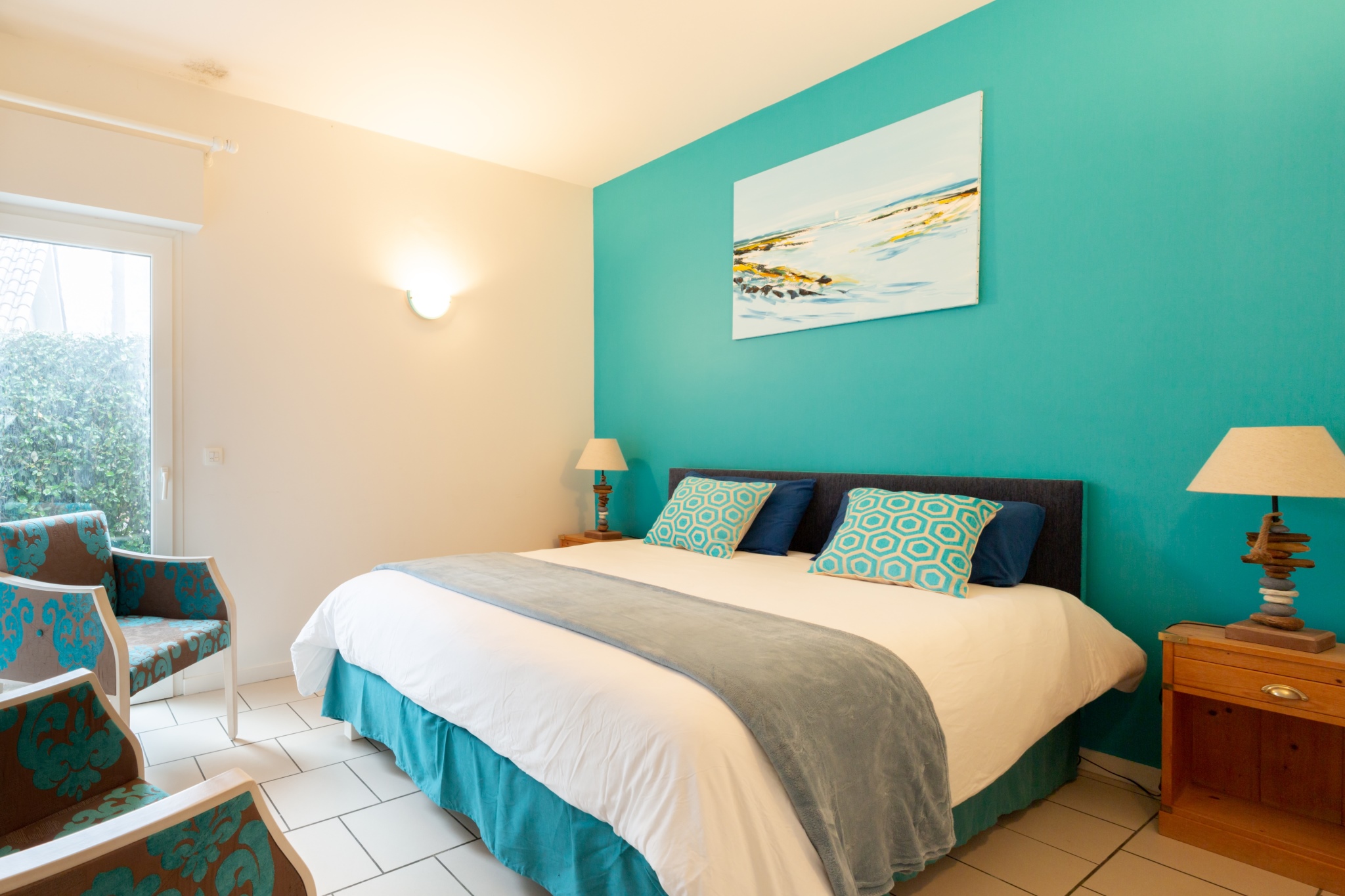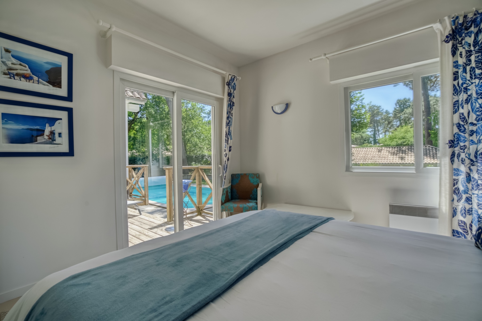 Biscarrosse-lac, Golf, agréable villa avec piscine chauffée de 9m sur 4,50m. Elle est composée d'une entrée, d'un séjour avec TV et accès sur la terrasse. Une cuisine équipée de plaques de cuisson, four, micro-onde, réfrigérateur, congélateur, lave vaisselle, cafetière, bouilloire, grille-pain. Un cellier avec lave linge et sèche linge. Une chambre avec un lit double, une chambre avec 2 lits simples, une suite parentale avec salle d'eau attenante et accès terrasse. Salle de bain et WC indépendant. Décoration contemporaine, jardin clos et paysager, parking. Wifi.